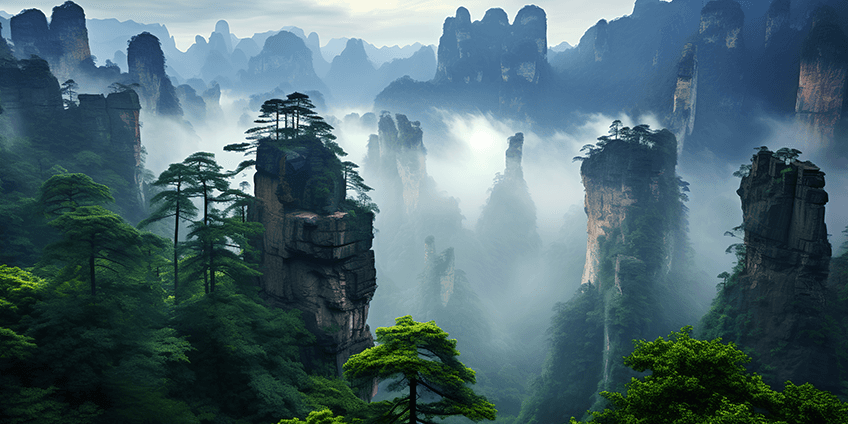 In addition to these well-known spots, China has many other charming scenic treasures. Zhangjiajie, located in Hunan Province, is a magical natural wonder famous for its unique quartz sandstone peaks. Known as the "fairyland on earth," it boasts thousands of towering, jagged peaks that rise abruptly from the ground, surrounded by mist and lush forests, creating a surreal landscape like something out of a fairy tale. It is also the inspiration for the floating mountains in the movie *Avatar*, attracting countless tourists who come to admire its otherworldly beauty.